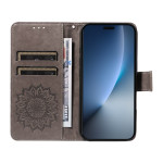Capa elegante em pele PU de primeira qualidade com um design de girassol em relevo 3D. Inclui 2 ranhuras para cartões, compartimento lateral, função mãos-livres e uma prática alça de mão. Proteção robusta com revestimento interior em TPU mate.