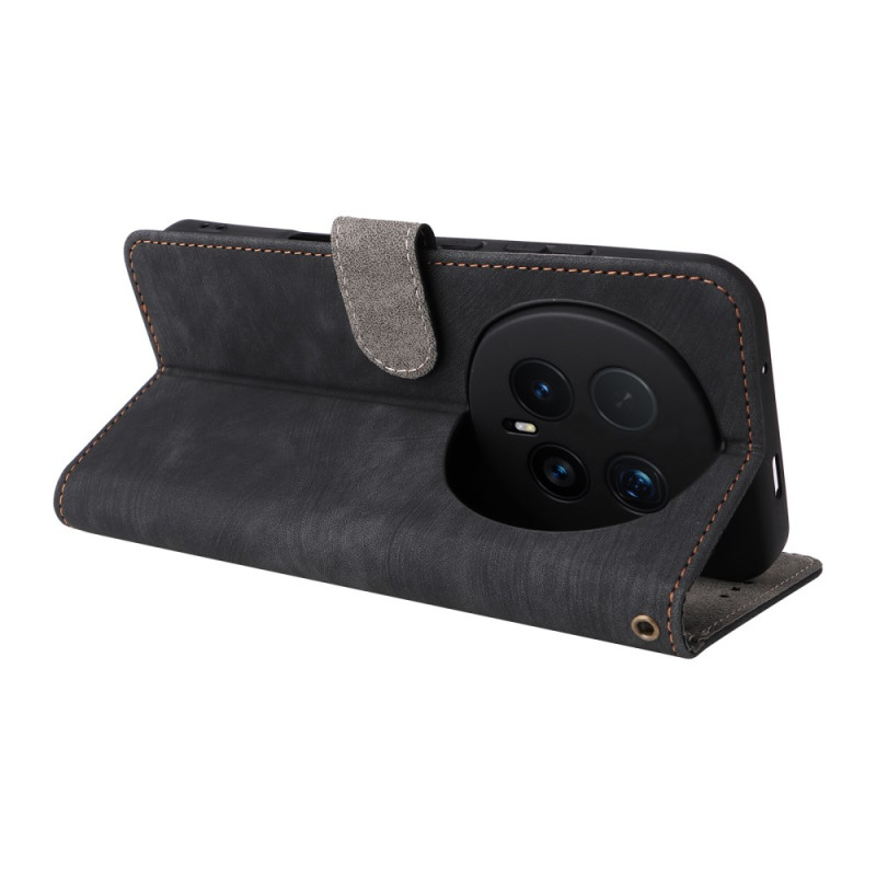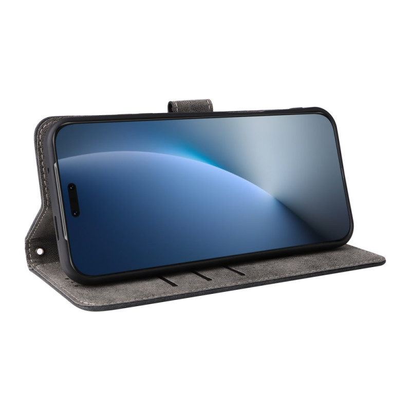 Capa elegante para carteira para o Honor Magic 8 Pro 5G em pele PU com bloqueio RFID. Inclui 3 ranhuras para cartões, 1 compartimento para dinheiro, suporte para mãos livres e correia de pulso. Proteção total contra choques diários com fecho magnético seguro.