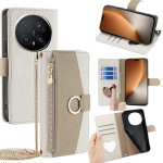 Capa multifunções em pele PU para o Honor Magic 8 Pro 5G. Design elegante com espelho integrado, 3 ranhuras para cartões, compartimento para dinheiro e bolso com fecho. Fornecida com uma correia de ombro de 1,2 m e um anel de suporte. Protege...