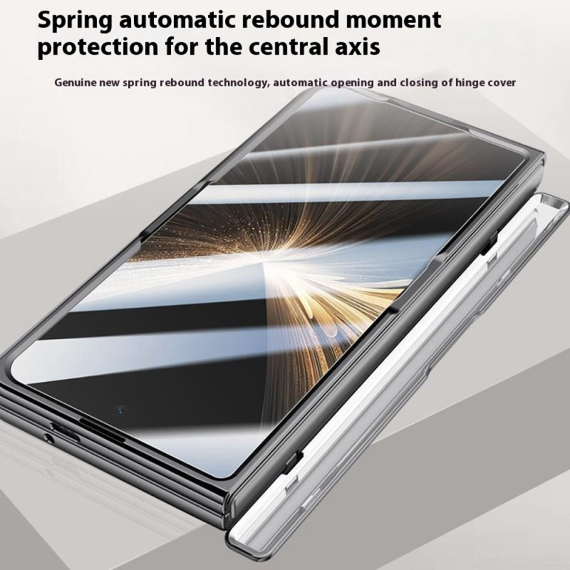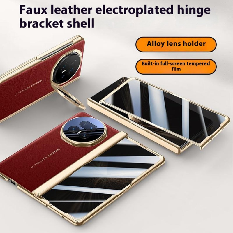 Descubra a nossa capa de proteção premium para o Honor Magic V5 5G. Fabricada em pele PU e PC de alta qualidade, oferece uma proteção duradoura e elegante. Com a sua película de vidro temperado HD e suporte integrado, desfrute de uma experiência visual óptima e de uma utilização confortável.