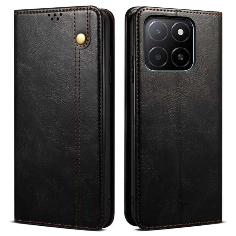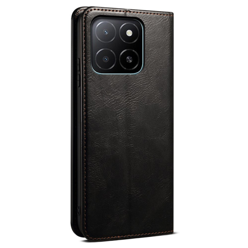 Étui portefeuille élégant pour Honor X5b / X5b Plus en cuir PU texturé effet cheval fou. Doté de 2 emplacements pour cartes, d'une fonction support mains libres et d'une fermeture magnétique sécurisée. Protection complète pour votre téléphone.