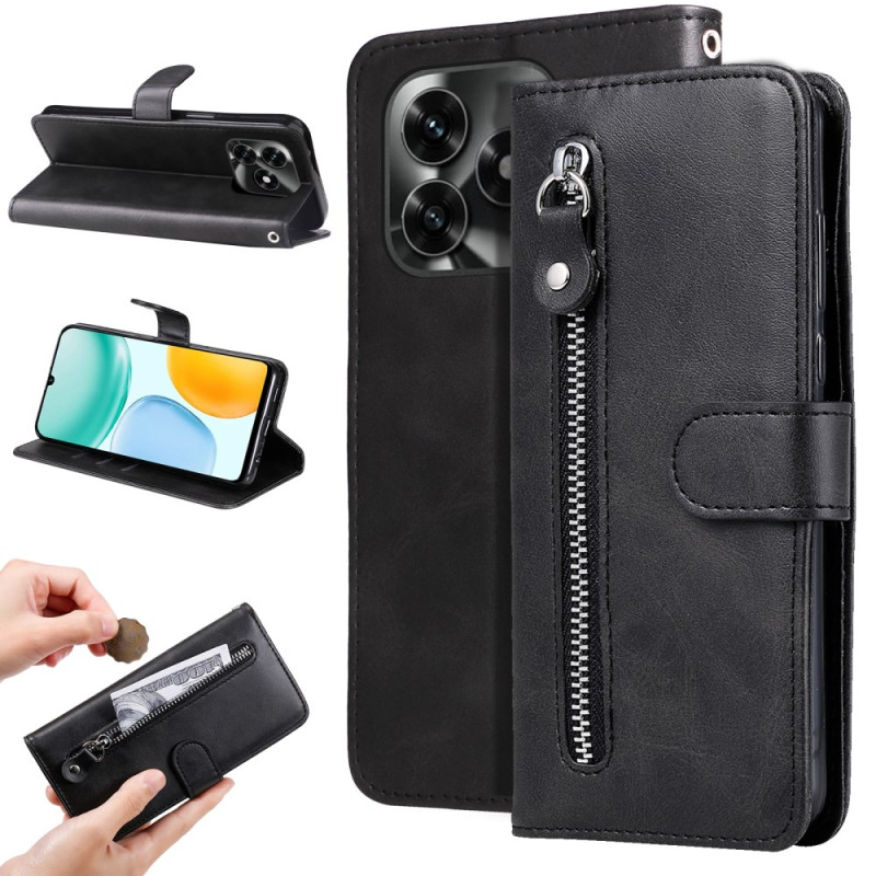 em pele PU para o Honor X5c Plus, que combina elegância e funcionalidade. Com o seu bolso seguro com fecho de correr, vários compartimentos para cartões e notas e a função de suporte integrada, este acessório oferece proteção completa e praticidade para a utilização diária. Desfrute de um design elegante e de uma qualidade superior para o seu smartphone.