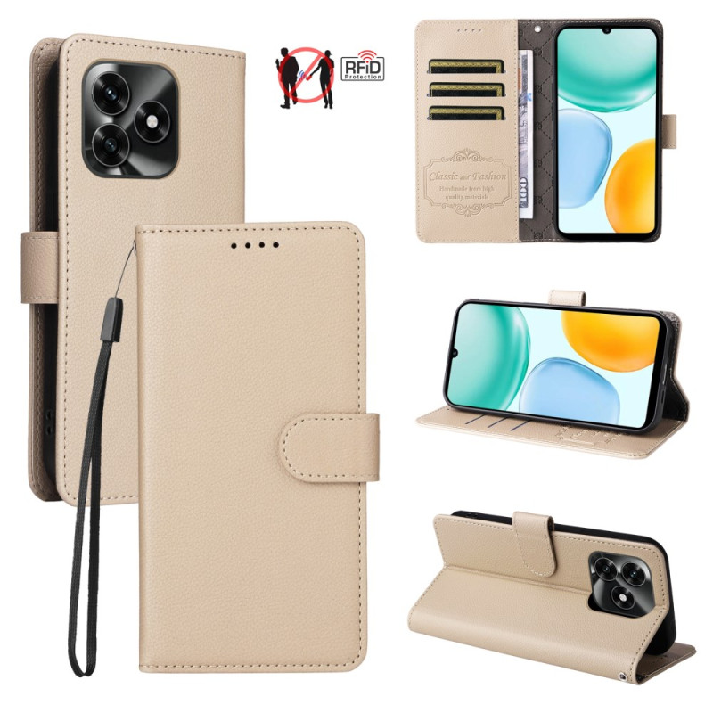 Descubra a nossa capa de proteção premium para o Honor X5c Plus. Fabricada em pele PU texturada e com tecnologia de bloqueio RFID, possui 3 ranhuras para cartões, uma função de suporte e um fecho magnético. Combinando estilo, segurança e praticidade, é o acessório ideal para o seu smartphone.
