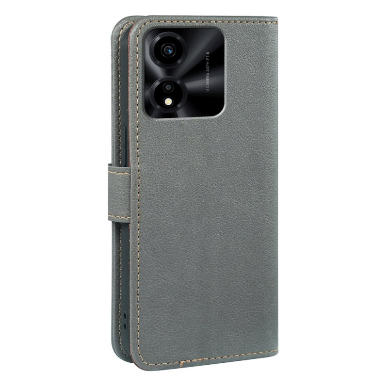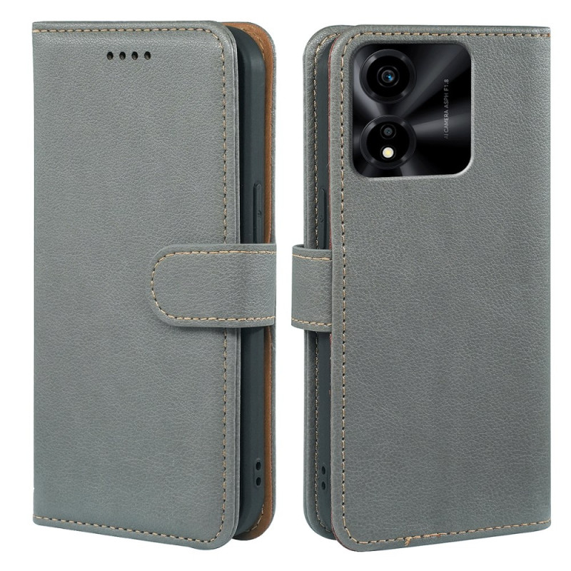 Capa de couro texturizado em lichia com proteção RFID para o Honor X5c Plus. Inclui proteção premium, ranhuras para cartões, bloqueio RFID, função de suporte e fecho magnético. Transforme o seu telemóvel numa carteira multifuncional, mantendo-o seguro.