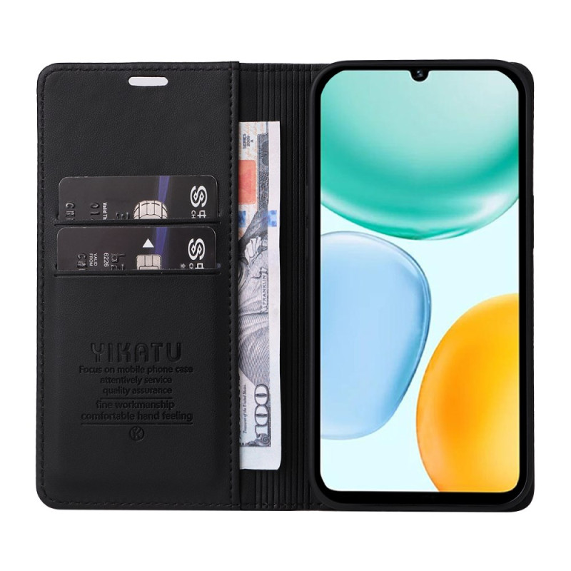 Descubra a nossa elegante capa de carteira em pele PU para o Honor X5c Plus. Com um fecho magnético robusto, duas ranhuras para cartões e um bolso para notas, esta capa combina funcionalidade e estilo. A sua função de suporte integrada permite uma visualização em modo mãos-livres, ideal para ver vídeos ou fazer chamadas.