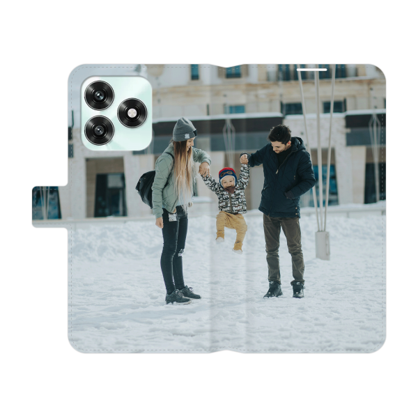 O Honor X5c Plus já é uma escolha inteligente. Torne-o verdadeiramente seu com uma capa de carteira que ostenta a sua memória favorita. Imprima aquela fotografia de família, paisagem de férias ou design inspirador em pele PU de alta qualidade. Não é apenas uma questão de estilo: o revestimento interior em TPU macio proporciona uma proteção eficaz contra choques para o seu telemóvel. É um acessório completo que protege o ecrã, funciona como carteira e como suporte. É a ideia de presente perfeita, combinando o útil com o emocional.