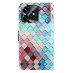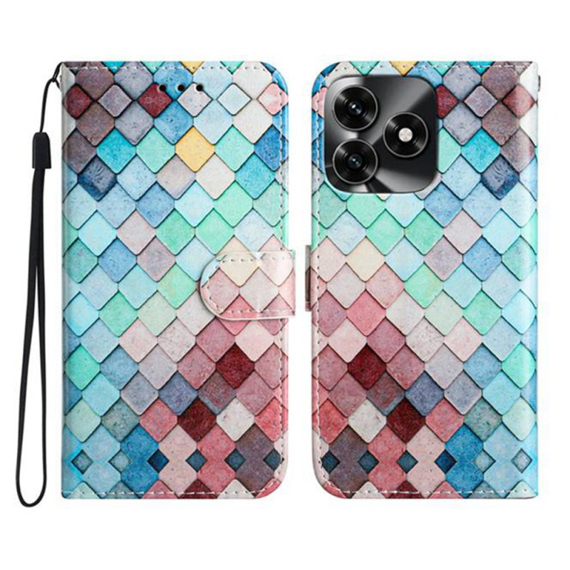 Capa de carteira elegante com padrão de grelha impressa para o Honor X5c Plus. Oferece proteção total, 3 ranhuras para cartões, suporte multi-alças e fecho magnético seguro. Inclui uma alça de mão amovível para facilitar o transporte.