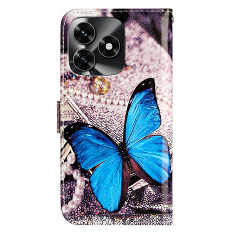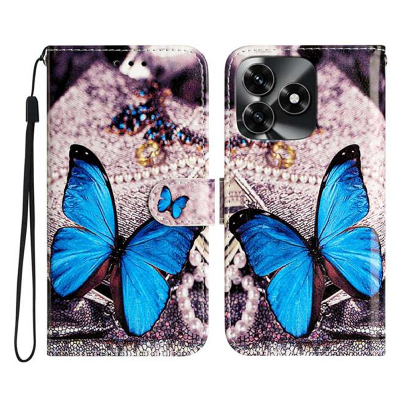 Capa elegante para carteira com um bonito motivo de borboleta azul. Inclui 3 compartimentos para cartões, suporte para várias correias e uma correia de mão amovível. Proteção total contra choques e riscos.