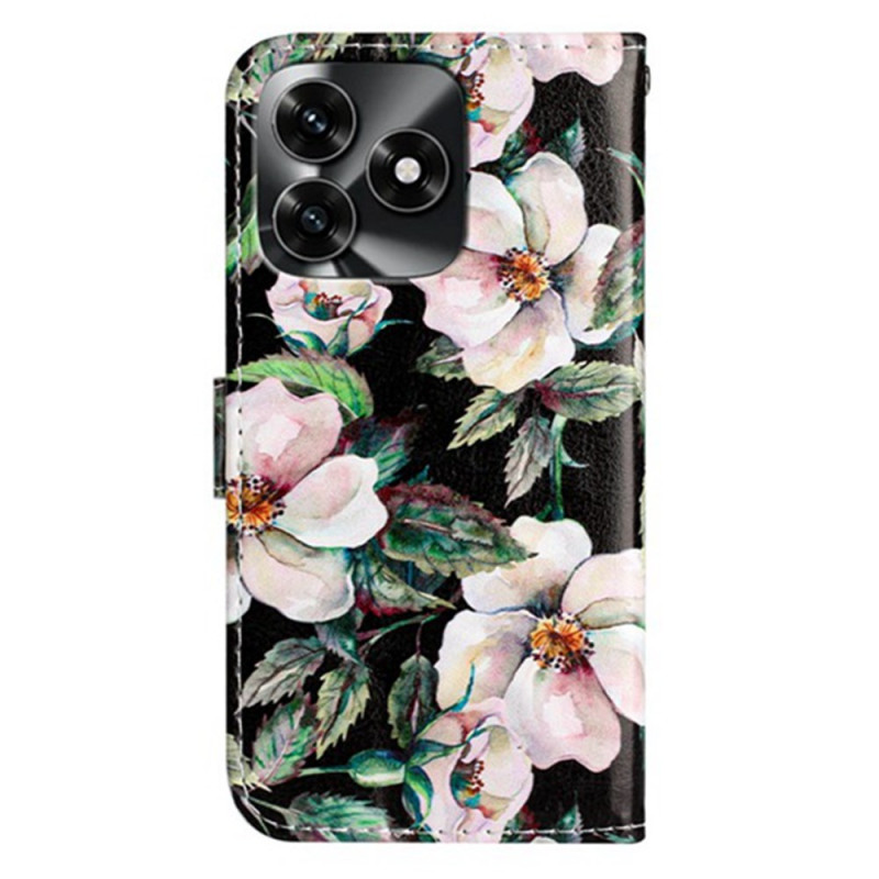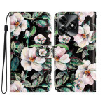 Capa elegante com motivos de magnólia para o Honor X5c Plus. Design refinado e feminino, suporte ajustável com várias alças e fecho magnético seguro. Inclui 3 ranhuras para cartões, bolso lateral e alça de mão amovível.
