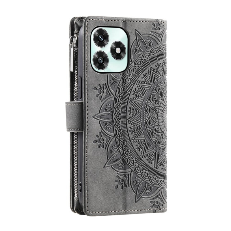 Étui portefeuille élégant en cuir PU premium avec motif fleur mandala. Doté de multiples emplacements pour cartes, d'une poche zippée et d'une fermeture magnétique sécurisée. Inclut une dragonne pratique et une fonction support mains libres.