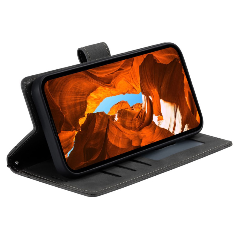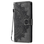 Étui portefeuille élégant en cuir PU avec motif mandala imprimé. Comprend 3 emplacements pour cartes, un compartiment pour espèces, une fermeture magnétique et une dragonne pratique. Support intégré pour un visionnage mains libres.