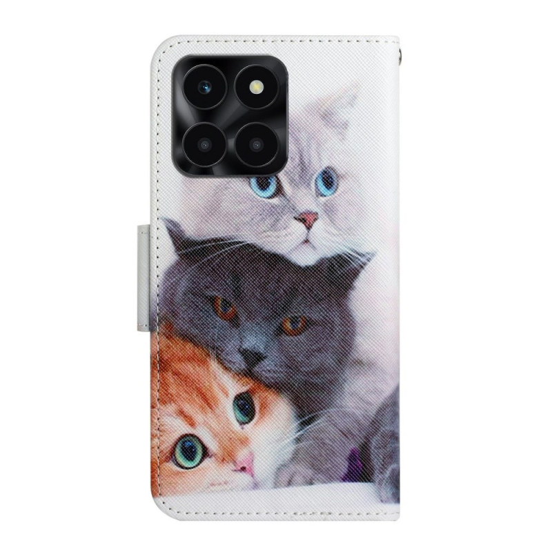 Proteja o seu Honor X6c 4G / X6b 4G / X6a 4G / X5b / X5b Plus com estilo com esta capa fólio com um encantador motivo de três gatos. Com funções práticas de carteira, um suporte integrado e uma alça de mão amovível, combina elegância e praticidade para a sua vida quotidiana.