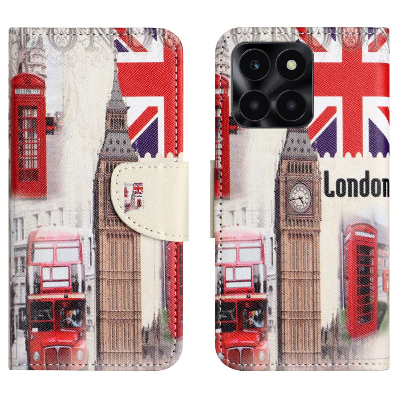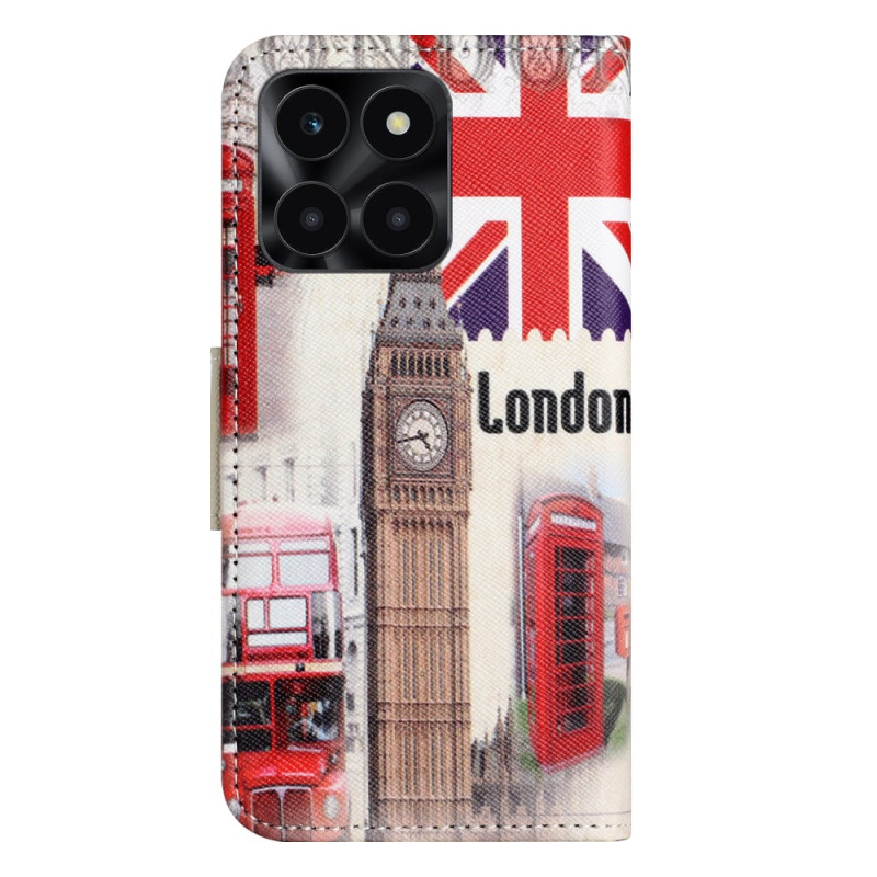 Capa elegante com o icónico motivo do Big Ben para o Honor X6c 4G / X6b 4G / X6a 4G. Proteção total, suporte ajustável e armazenamento prático com 2 ranhuras para cartões e 1 bolso para dinheiro.