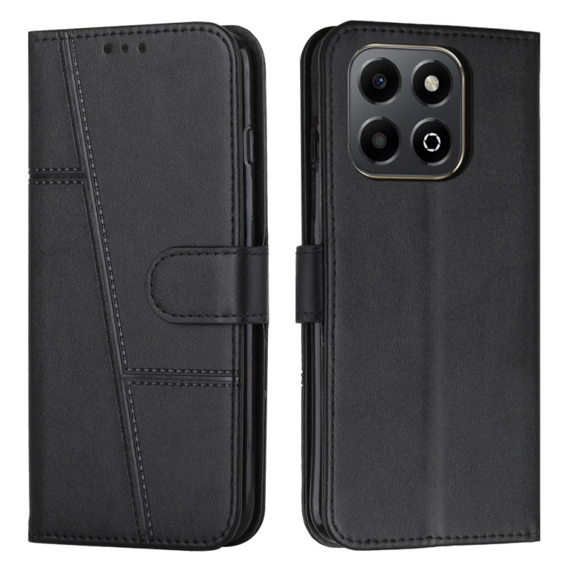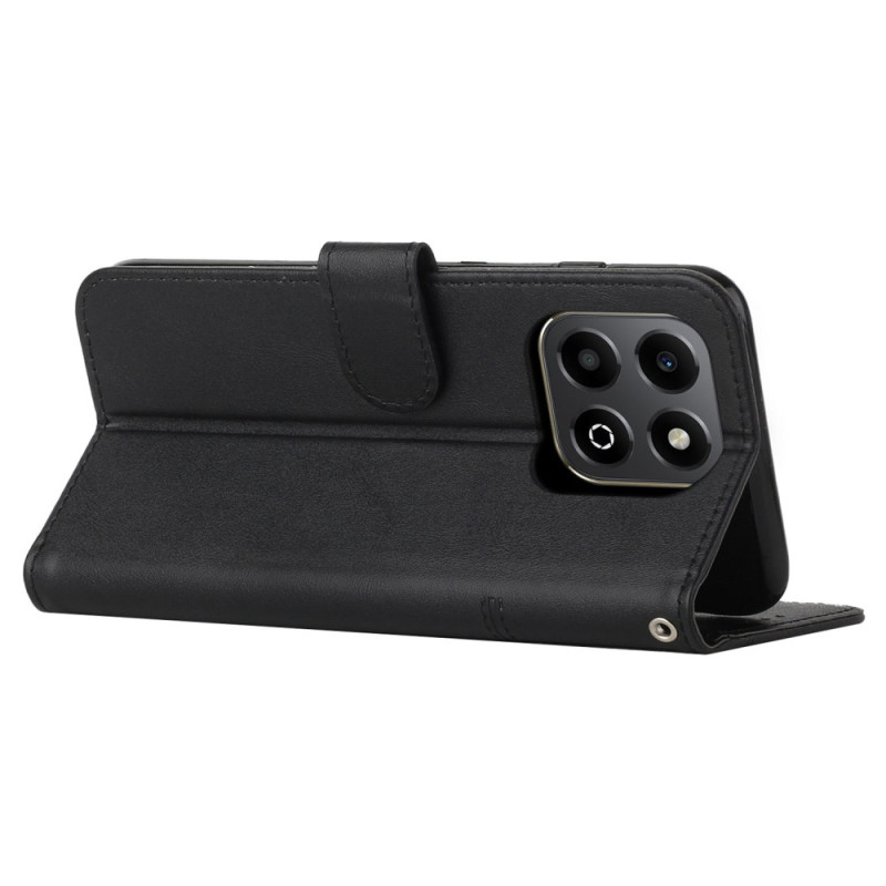 Étui portefeuille élégant en cuir PU texturé pour Honor X6b 4G / X6a 4G. Doté de fentes pour cartes, porte-monnaie et support mains libres intégré. Fermeture magnétique sécurisée et dragonne pratique incluse. Protection complète contre les chocs.