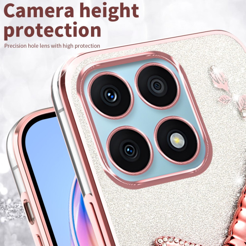 Proteja o seu Honor X6a 4G com estilo com esta capa cintilante adornada com flores e strass. O seu suporte de libélula integrado permite ver com as mãos livres, enquanto o seu design TPU duradouro garante uma proteção óptima para a utilização diária.