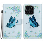 Protégez votre Honor X6a 4G avec élégance grâce à cet étui portefeuille au motif papillon bleu et fleurs. Doté de compartiments pour cartes, d'un support mains libres et d'une dragonne pratique, il allie style et fonctionnalité au quotidien.