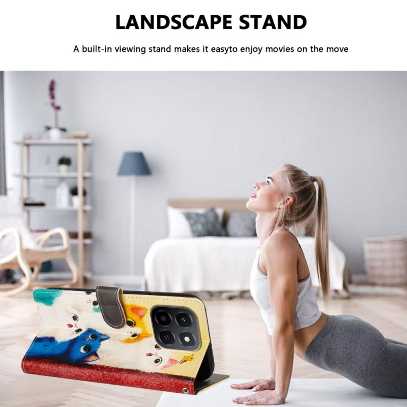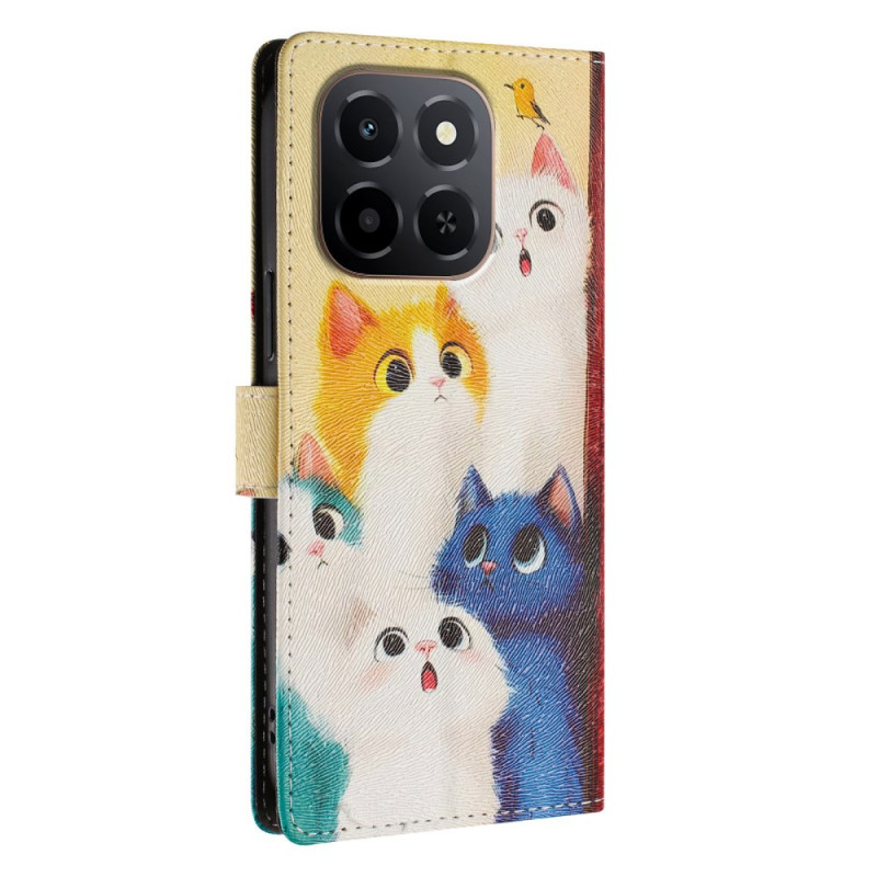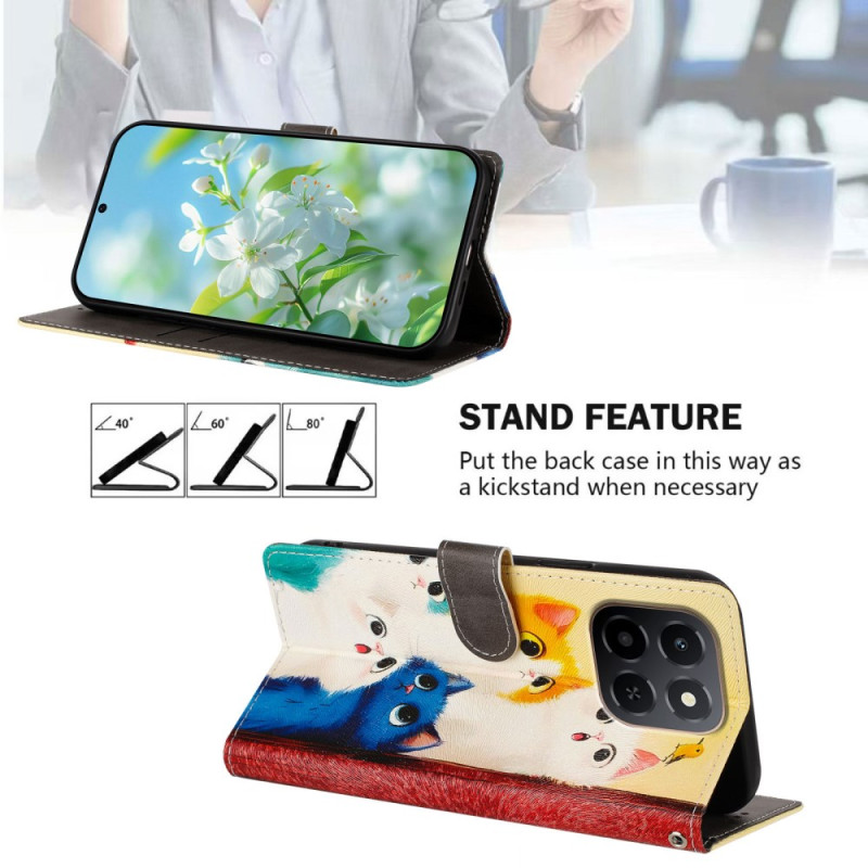 Proteja o seu Honor X6c 4G / X5b / X5b Plus com estilo com este capa de carteira com um motivo de gato colorido. Com 2 compartimentos para cartões, 1 bolso para notas e uma correia de pulso amovível, combina elegância e praticidade.
