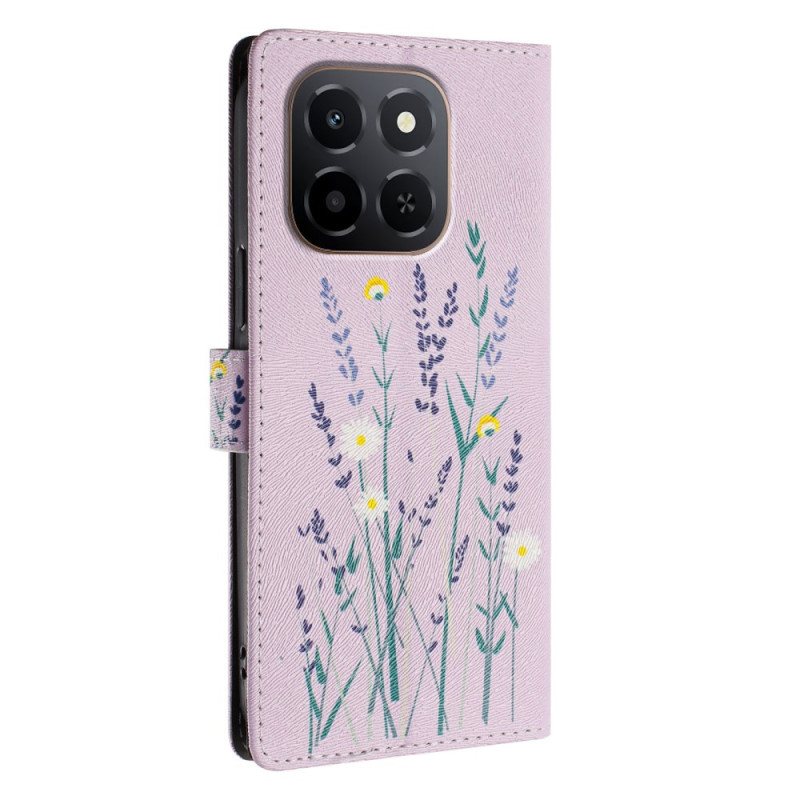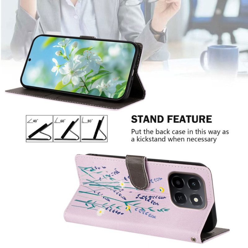Proteja o seu Honor X6c 4G / X5b / X5b Plus em grande estilo com esta capa para carteira com um requintado padrão lavanda. Com ranhuras para cartões, um suporte ajustável e uma correia de pulso amovível, combina estilo e praticidade para uma utilização quotidiana.