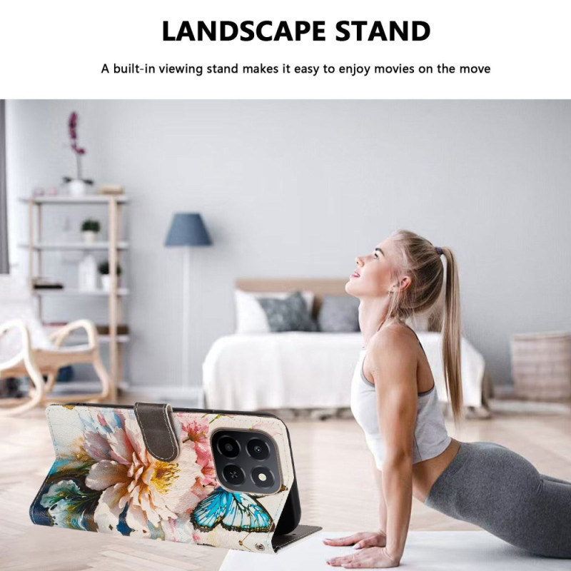 Proteja o seu Honor X6c 4G / X5b / X5b Plus com estilo com esta capa para carteira com motivos de borboletas e flores. Com compartimentos para cartões, um suporte ajustável e uma correia de pulso amovível, combina estilo e praticidade para uma utilização quotidiana.