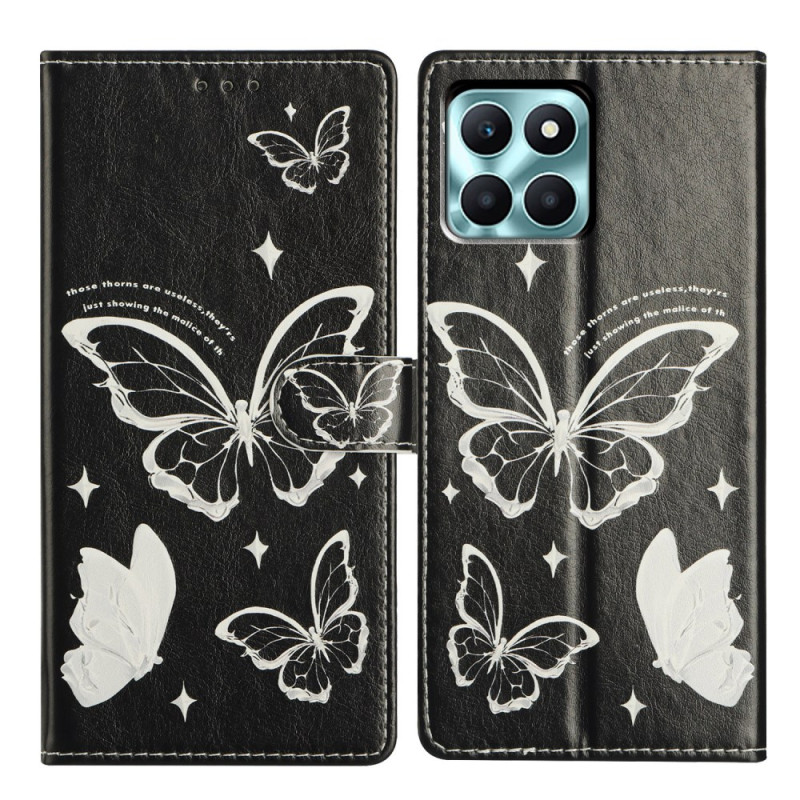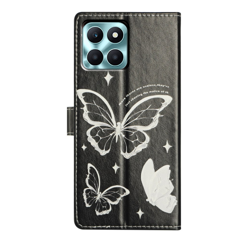Proteja o seu Honor X6c com estilo com esta capa para carteira com motivos de borboleta. Design tudo-em-um com ranhuras para cartões, compartimento para moedas e suporte integrado. Inclui um fecho magnético seguro e uma correia de mão amovível.