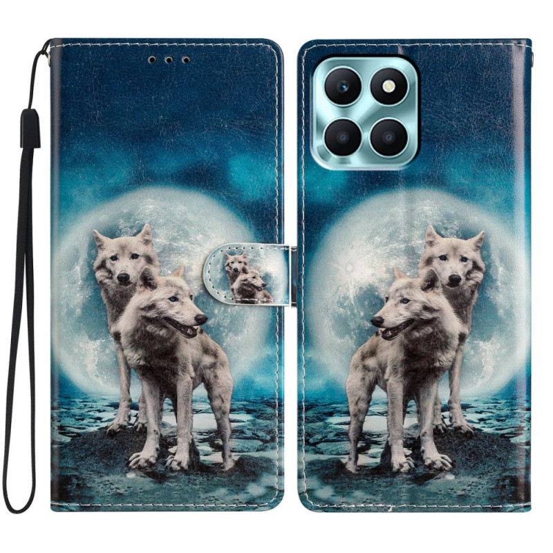 Capa de carteira elegante para o Honor X6c 4G com um bonito design de duas lâminas. Design prático com 3 ranhuras para cartões, bolso para dinheiro, função de suporte e alça de mão. Fecho magnético seguro e proteção total.