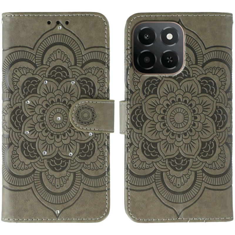 Proteja o seu Honor X6c 4G com estilo com esta capa com um sofisticado design de mandala. Adornada com brilhantes strass, inclui ranhuras para cartões, um bolso para dinheiro e uma prática alça de mão para uso quotidiano.