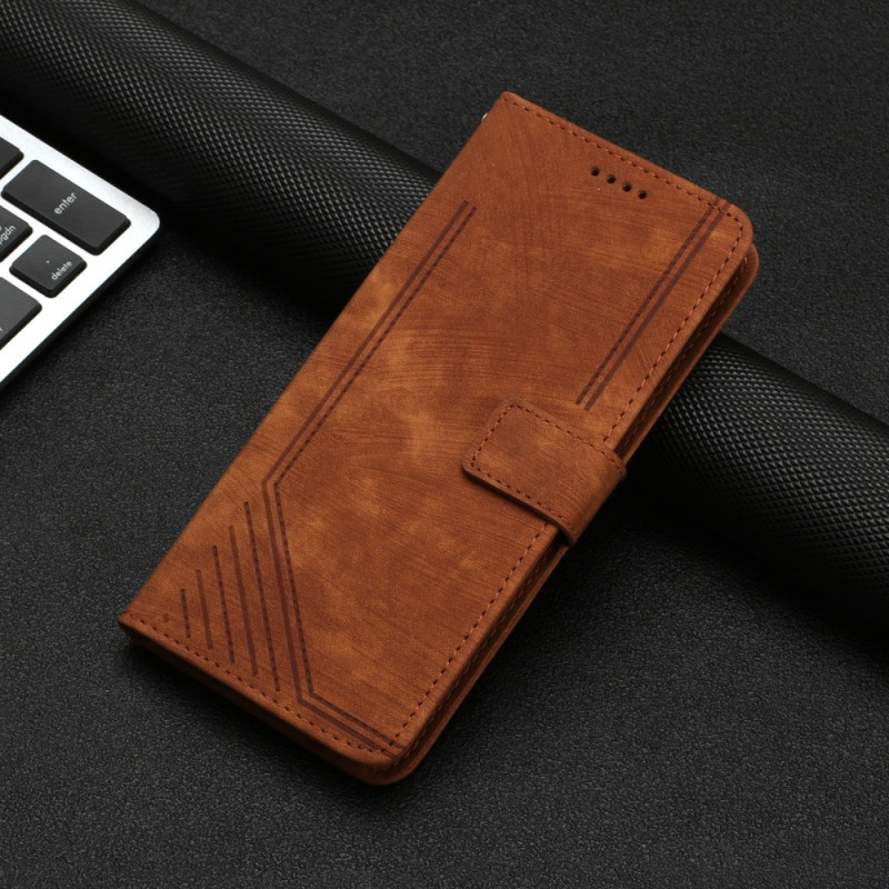 Étui portefeuille élégant pour Honor X6c 4G en cuir PU premium avec lignes imprimées. Doté de 3 emplacements pour cartes, d'une fonction support pratique et d'une fermeture magnétique sécurisée. Protection complète avec dragonne amovible incluse.