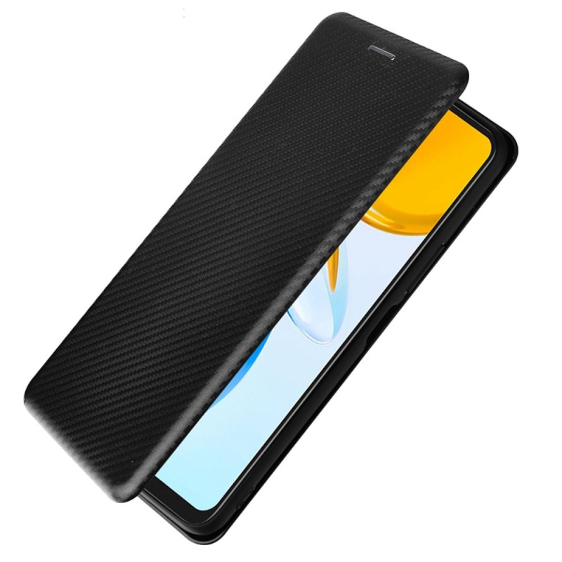 Proteja o seu Honor X7 com estilo com esta sofisticada capa tipo fólio. A sua textura em fibra de carbono oferece uma aderência excecional e resiste às impressões digitais. Proteção dupla robusta, fecho magnético seguro e função de suporte integrada.