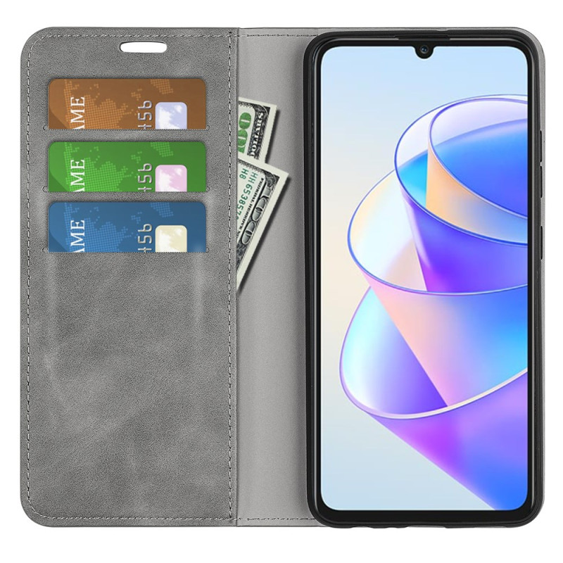 Capa de carteira elegante para o Honor X7a 4G com fecho magnético automático, suporte integrado e várias ranhuras para cartões. Desfrute de uma proteção completa e de um design requintado com um toque sedoso para o seu smartphone.
