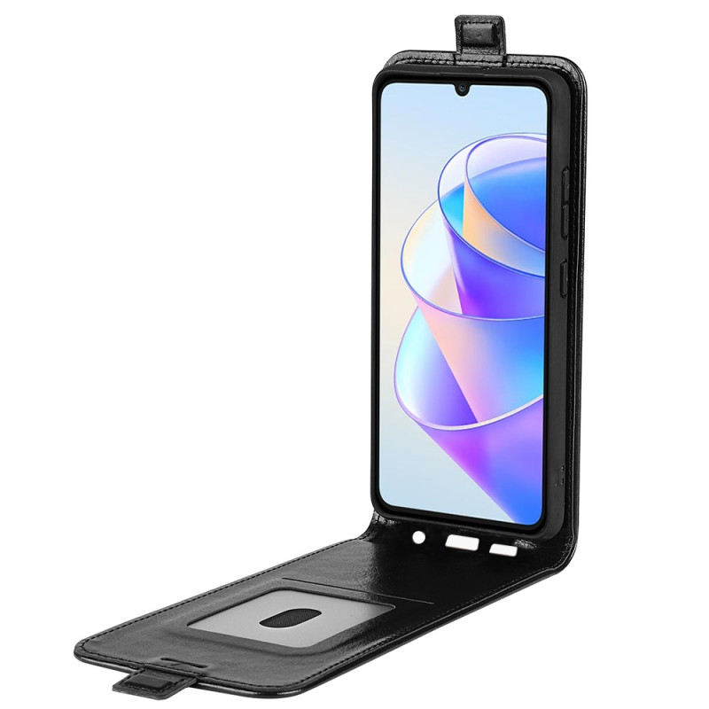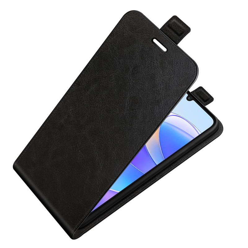 Capa elegante com aba vertical para o Honor X7a 4G. Design prático com abertura para baixo para utilização com uma só mão, suporte para cartões integrado e fecho magnético seguro. Acabamento texturado de alta qualidade para uma aderência confortável.