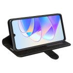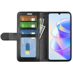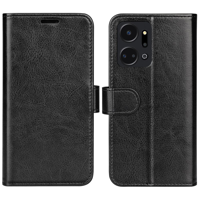 Capa elegante em pele PU com textura de grão para o Honor X7a 4G. Design de aba com suporte ajustável, suporte para cartões integrado e fecho magnético seguro. Proteção total contra choques e riscos.