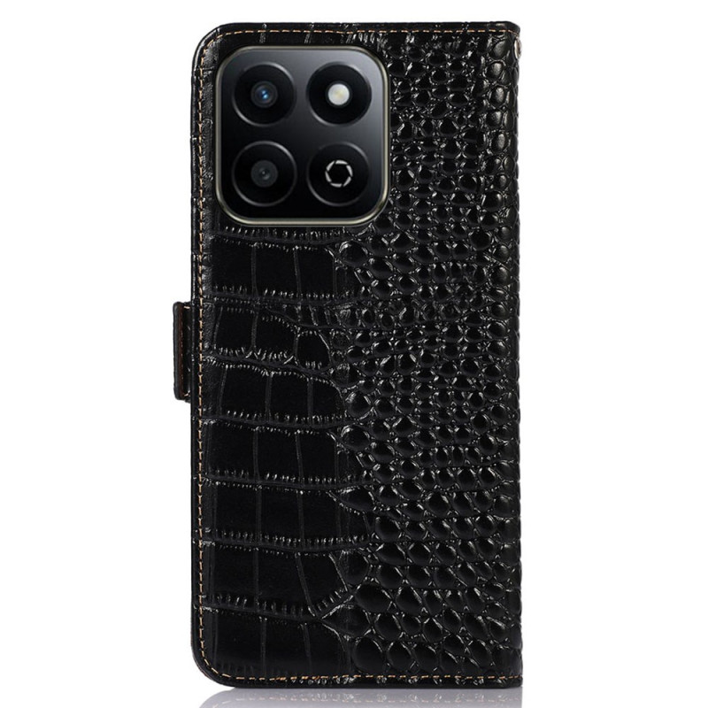 Descubra a elegância e a funcionalidade desta carteira em pele genuína com textura de crocodilo. Com 3 compartimentos para cartões, um bolso para notas e um suporte ajustável, combina um estilo requintado com proteção.