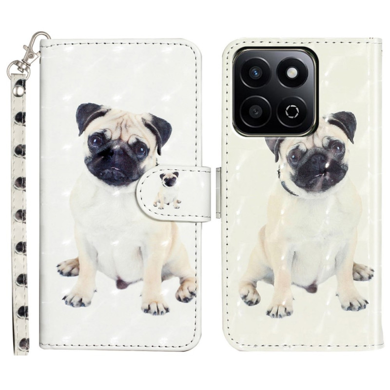 Capa de carteira elegante com impressão 3D de cão. Design em pele PU de alta qualidade com função de suporte, ranhuras para cartões e fecho magnético seguro. Proteção completa contra choques e riscos com a prática correia de mão incluída.