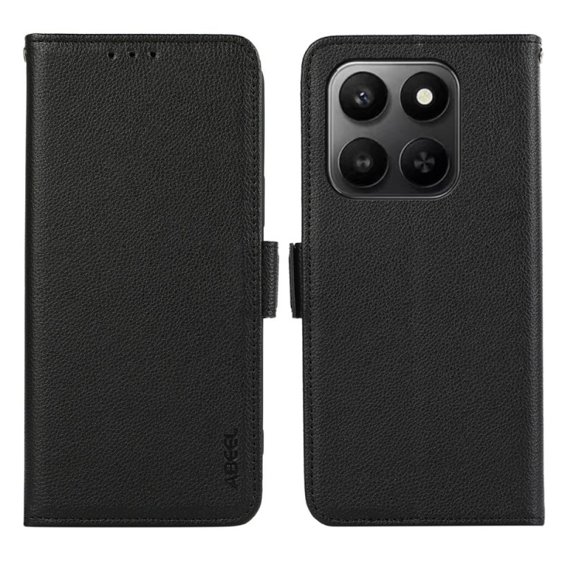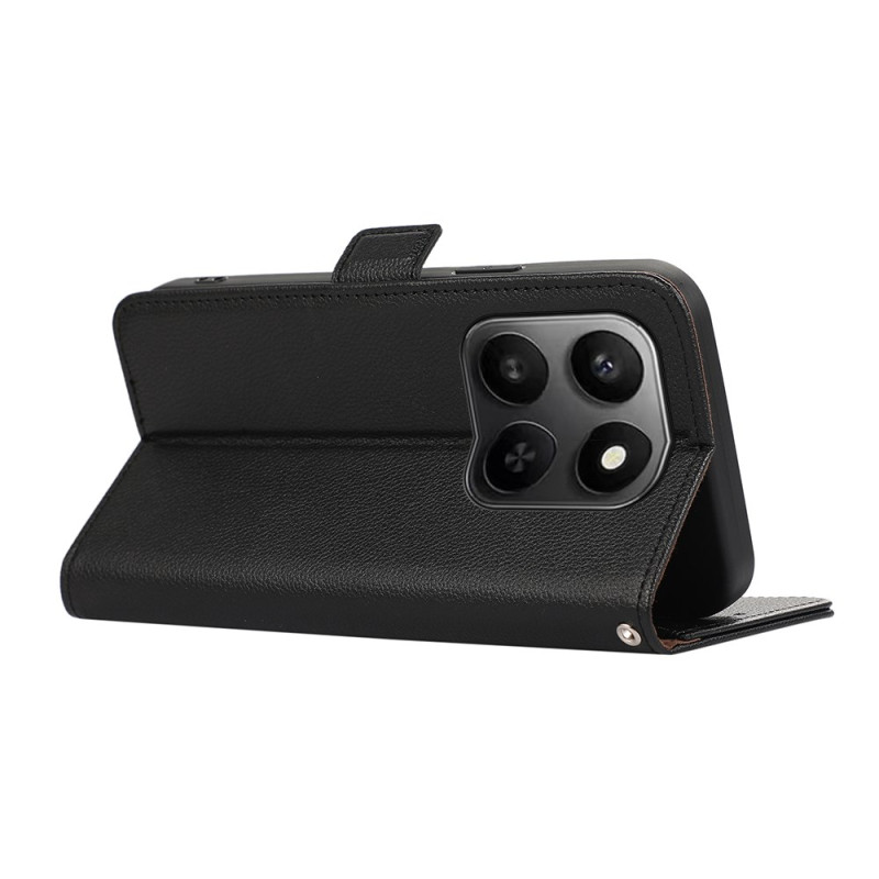 Capa elegante em pele PU com textura de lichia e proteção RFID integrada. Design fino e leve em TPU, ranhuras para cartões e suporte mãos-livres. Proteção completa contra riscos e quedas para o seu smartphone Honor.