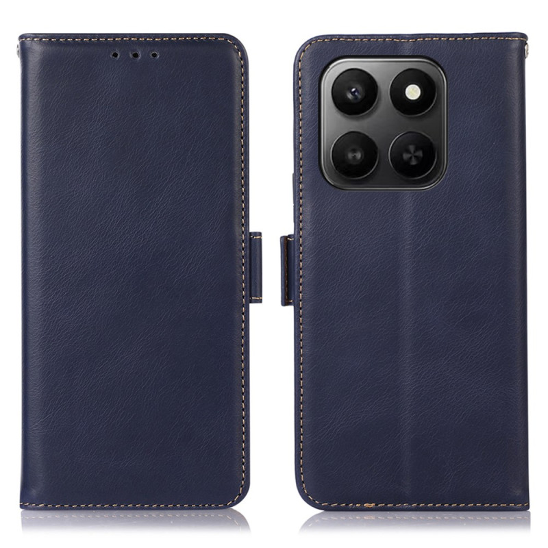 Étui portefeuille en cuir véritable avec technologie de blocage RFID pour Honor X7d 5G. Comprend 3 emplacements pour cartes, 1 poche pour billets et un support intégré. Protection complète contre les chocs, rayures et chutes.