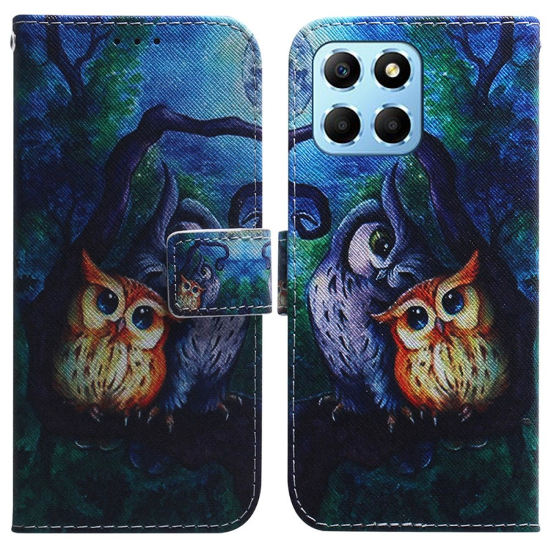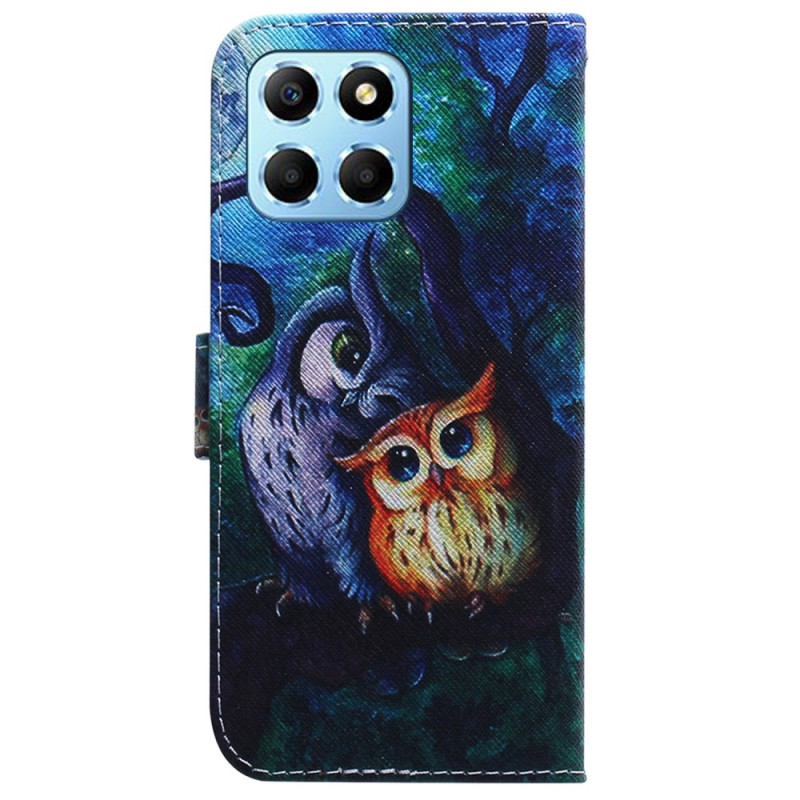 Capa elegante para carteira com um encantador motivo de duas corujas. Design multifuncional com porta-cartões integrado, compartimento para dinheiro e um prático suporte rebatível. Fecho magnético seguro para uma proteção ideal no dia a dia.