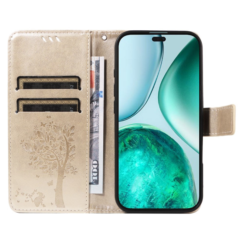 Descubra a nossa elegante capa de carteira para o Honor X8c 4G. Fabricada em pele PU de alta qualidade com um motivo de árvore e gato impresso, oferece uma proteção robusta e um estilo único.