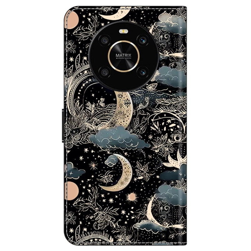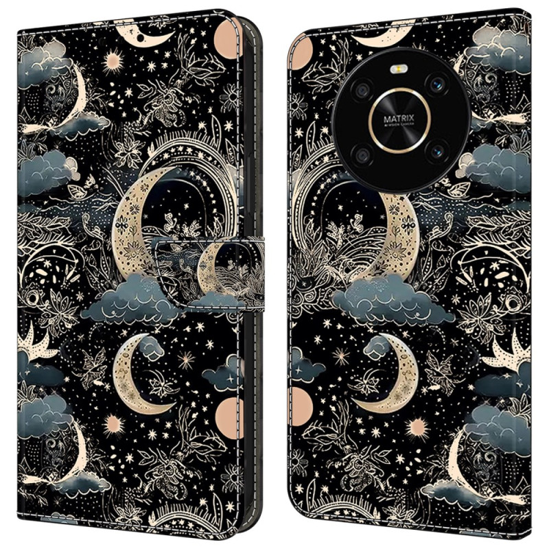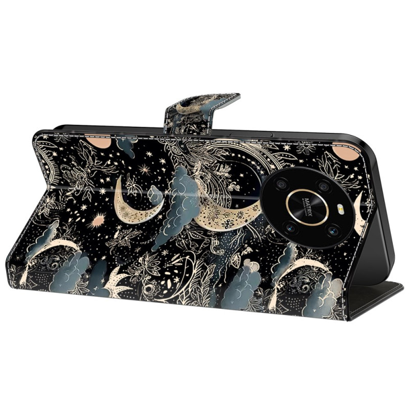 Capa elegante para o Honor X9 5G que combina estilo e funcionalidade. Design requintado com motivo lunar, carteira integrada com 2 ranhuras para cartões e 1 bolso para notas. Suporte ajustável para visualização em mãos-livres. Proteção total anti-choque e anti-riscos.