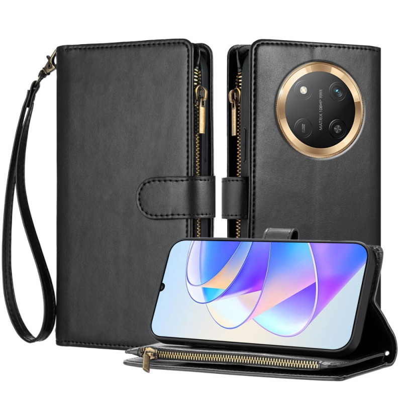 Estojo multifunções com fecho de correr e suporte integrado. Com 8 compartimentos para cartões, bolso com fecho de correr e alça de mão amovível. Proteção contra choques reforçada com fecho magnético seguro para uma utilização quotidiana óptima.