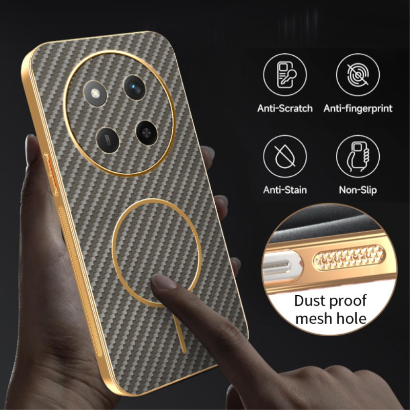 Proteção elegante e robusta para o Honor Magic 7 Lite / X9c com acabamento eletrolítico de primeira qualidade. O material TPU flexível oferece uma óptima absorção de choques e um ajuste perfeito. Textura anti-riscos em fibra de carbono e bordos elevados para proteger o ecrã e a câmara.