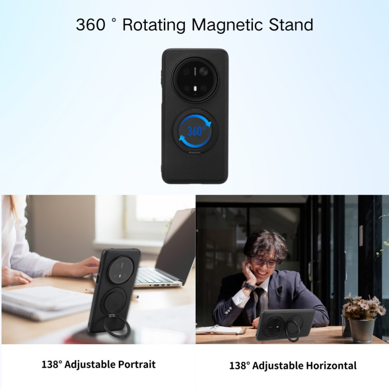 Proteja o seu Honor X9c 5G com estilo com esta capa magnética que inclui um suporte rotativo inovador. O seu design moderno com textura de fibra de carbono combina estilo e funcionalidade.
