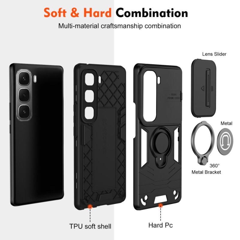 Proteção completa para o seu Infinix Hot 60i 4G, combinando estilo e funcionalidade. Com uma inovadora proteção deslizante da câmara, um suporte integrado e um anel metálico para uma aderência segura. Compatível com suportes magnéticos.