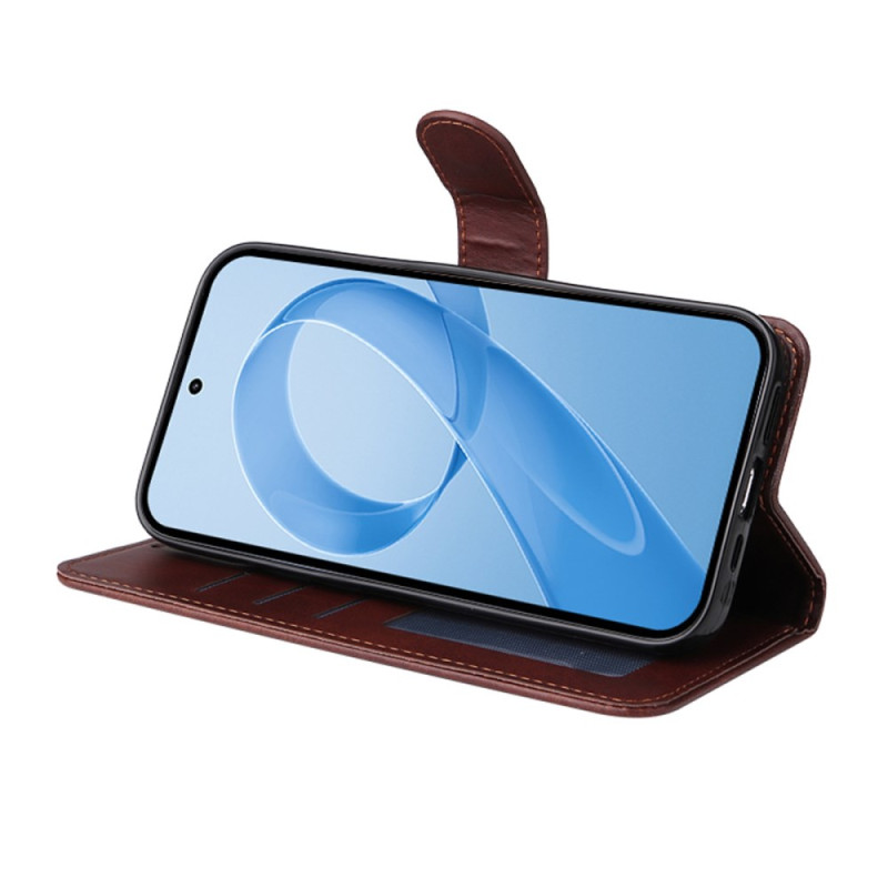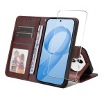 Étui portefeuille élégant en cuir PU avec texture grain de veau, 3 emplacements pour cartes, support intégré et dragonne amovible. Livré avec un protecteur d'écran ultra-fin de 0,18mm compatible avec le déverrouillage par empreinte digitale ultrasonique.