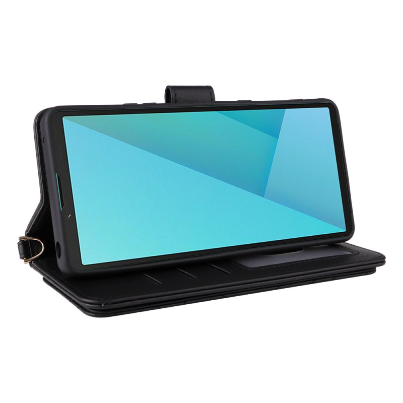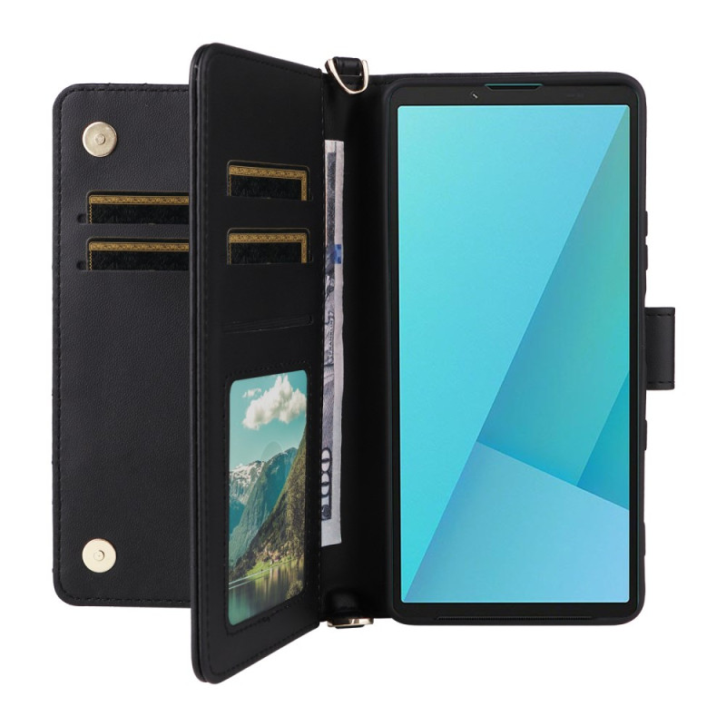 Descubra a nossa capa em pele topo de gama para o Sony Xperia 10 VII. Com um suporte ajustável, várias ranhuras para cartões e um fecho magnético seguro, este acessório combina praticidade e proteção. Com a sua alça de ombro ajustável e a alça de mão amovível, oferece uma versatilidade inigualável para transportar o seu telemóvel com toda a segurança.