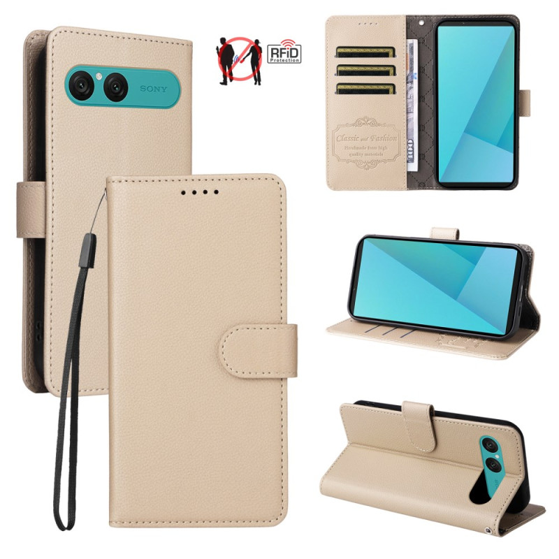 Descubra a nossa capa protetora elegante e funcional para o Sony Xperia 10 VII. Fabricada em pele PU de alta qualidade, oferece proteção total com tecnologia de bloqueio RFID, três ranhuras para cartões, um bolso para bilhetes, uma função de suporte e uma correia de pulso amovível para uma portabilidade ideal.