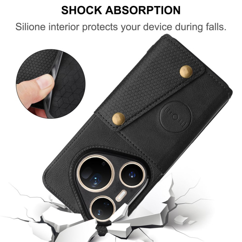 Capa multifunções para o Huawei Pura 80 Ultra que combina proteção de primeira qualidade e funcionalidade. Inclui suportes para cartões integrados, um suporte ajustável para visualização em mãos-livres e um fecho de pressão duplo seguro.