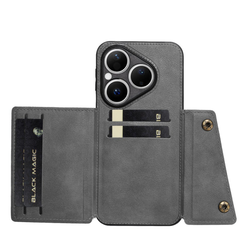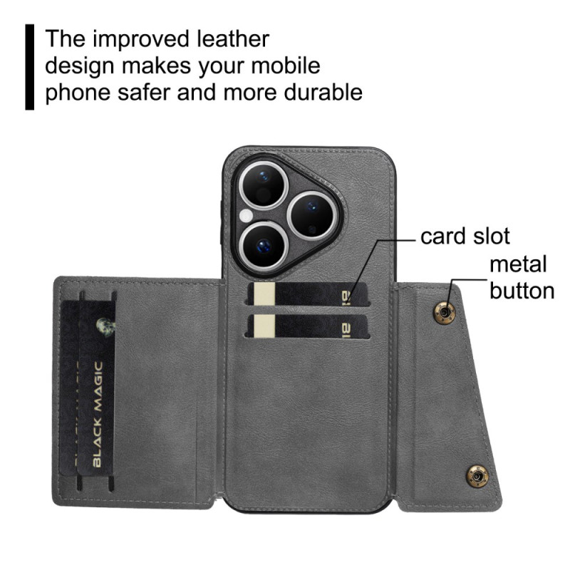 Capa multifuncional para o Huawei Pura 80 que combina estilo e carácter prático. Inclui suportes para cartões integrados, um suporte ajustável para visualização em mãos-livres e um fecho de pressão duplo seguro.