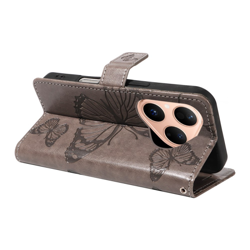 Capa elegante para carteira para o Huawei Pura 80 com estampado floral de borboleta. Inclui 2 ranhuras para cartões, função de suporte e uma prática correia de mão. Proteção de qualidade superior que combina estilo e funcionalidade para o seu smartphone do dia a dia.