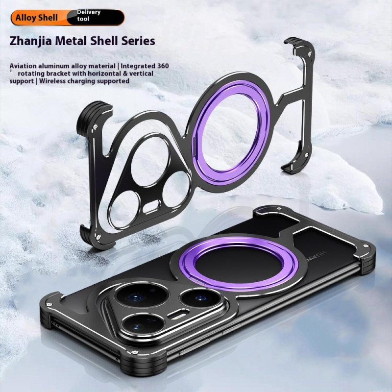 Proteja o seu Huawei Pura 80 Pro com esta capa em liga de alumínio de qualidade aeronáutica. Inclui suporte rotativo de 360°, design ventilado anti-superaquecimento, proteção reforçada dos cantos e compatibilidade com carregamento MagSafe. Inclui proteção total para as lentes fotográficas.