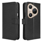 Capa elegante com textura de diamante para o seu Huawei Pura 80 Pro. Inclui ranhuras para cartões, bolso para dinheiro e uma prática alça de mão. Fecho magnético seguro e suporte dobrável integrado para uma visualização em mãos-livres.
